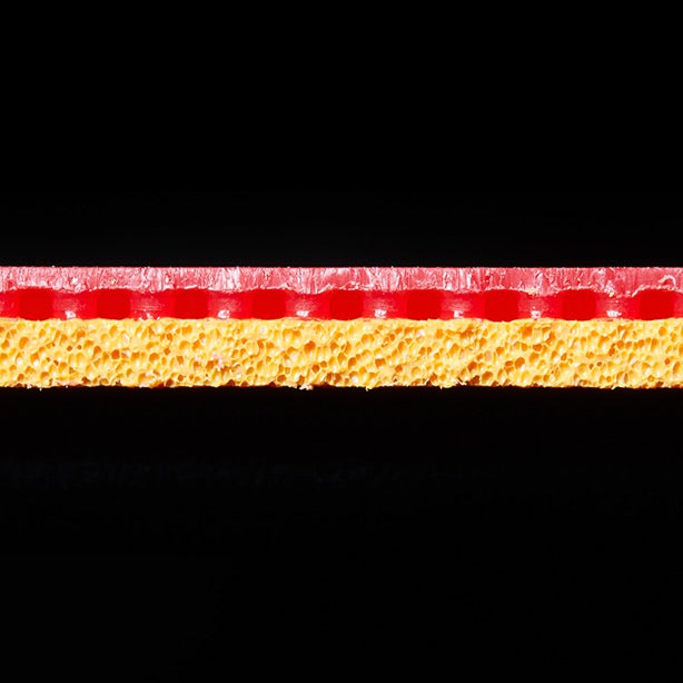 De medium onderlaag garandeert een uitstekende balans tussen snelheid en balgevoel.De spinny toplaag is ontworpen voor een solide topspin en blokstijl.