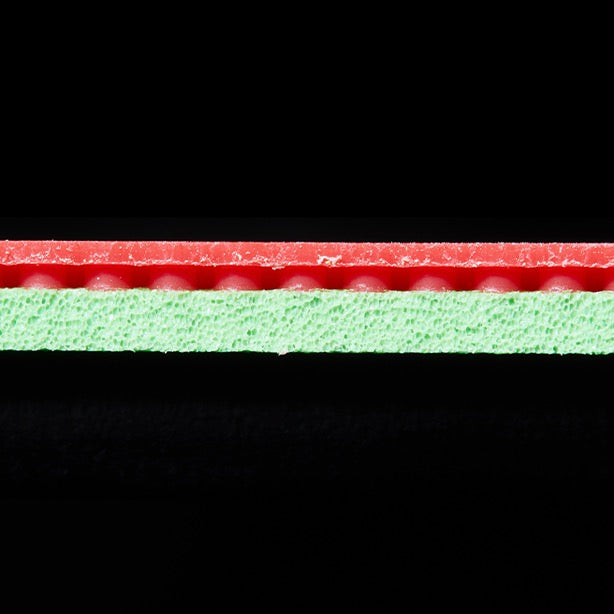 • Rotatie toplaag voor spin geladen vluchtbaan en optimale grip.