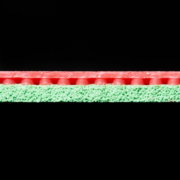 De ENERGY CELL-onderlaag met zijn zeer elastische celstructuur zorgt voor een extreem dynamische energieoverdracht voor alle topspin-variaties.