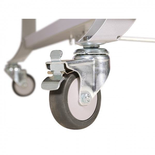 Licht lopende zwenkwielen 75mm, twee daarvan uitgevoerd met rem.